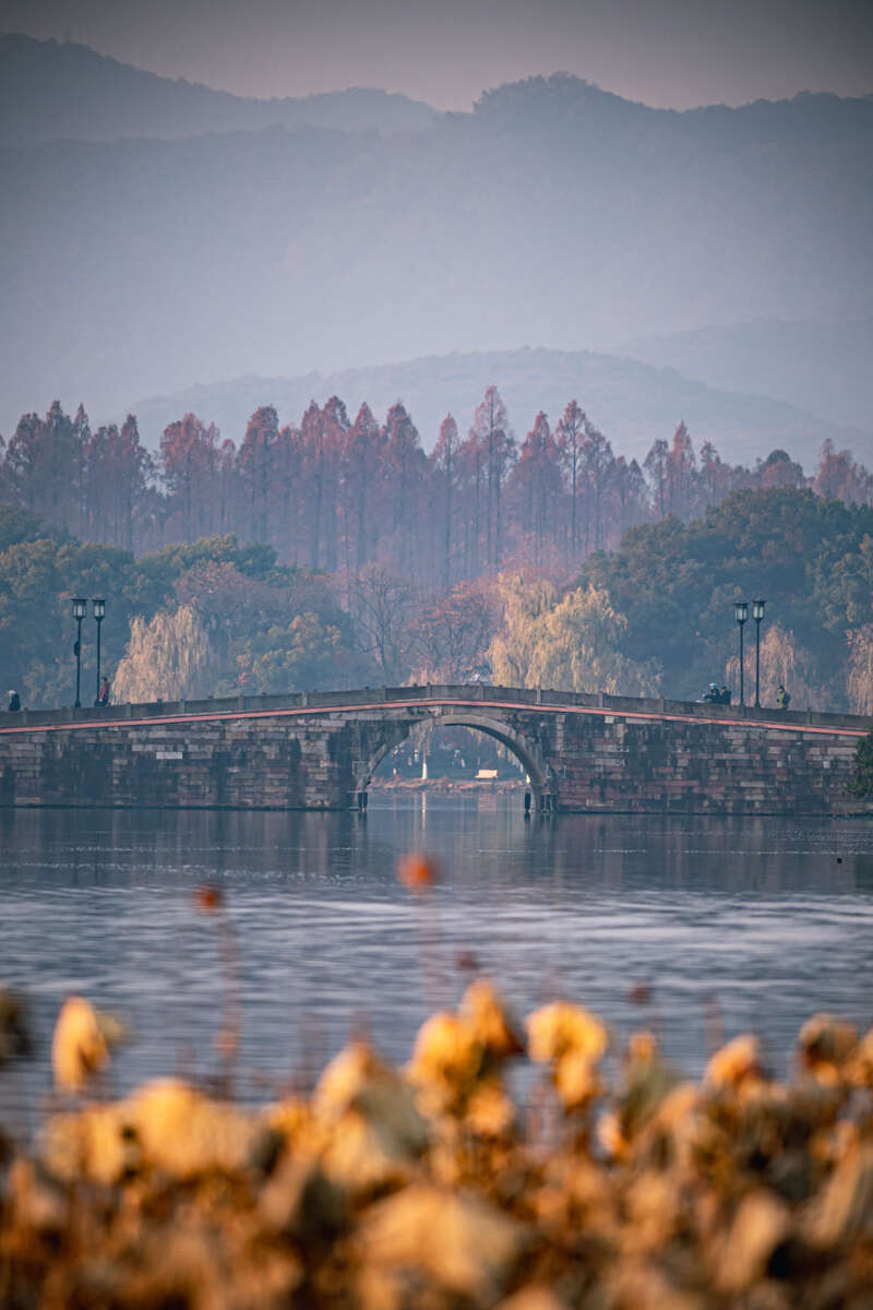 ↑杭州西湖西泠桥(2023年12月26日)。 新华社记者 江汉 摄