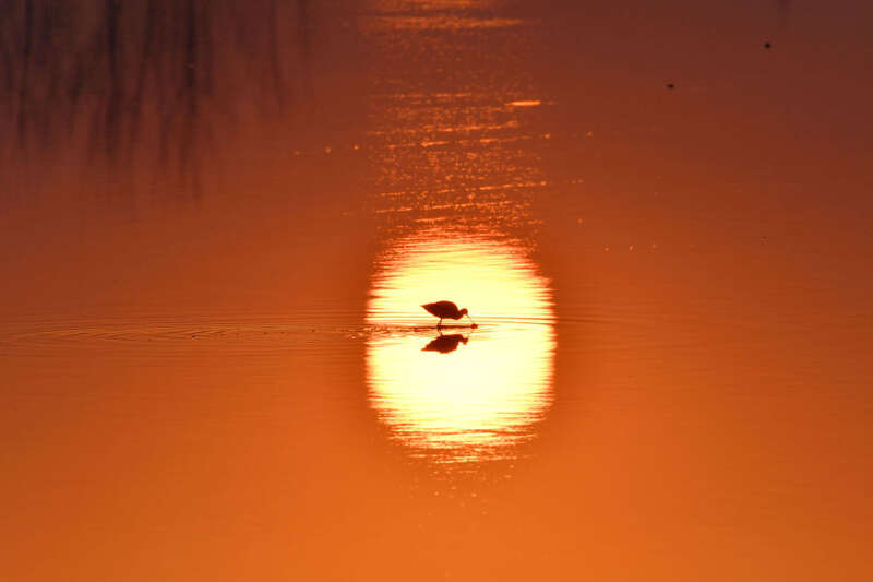 ↑东洞庭湖国家级自然保护区内的反嘴鹬(2021年1月15日)。 新华社记者 赵众志 摄