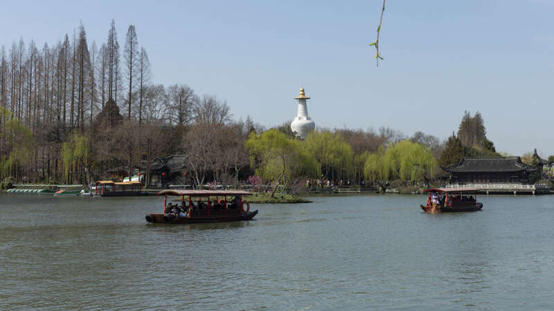 ↑扬州瘦西湖白塔(2024年3月20日)。 新华社记者 高巍 摄
