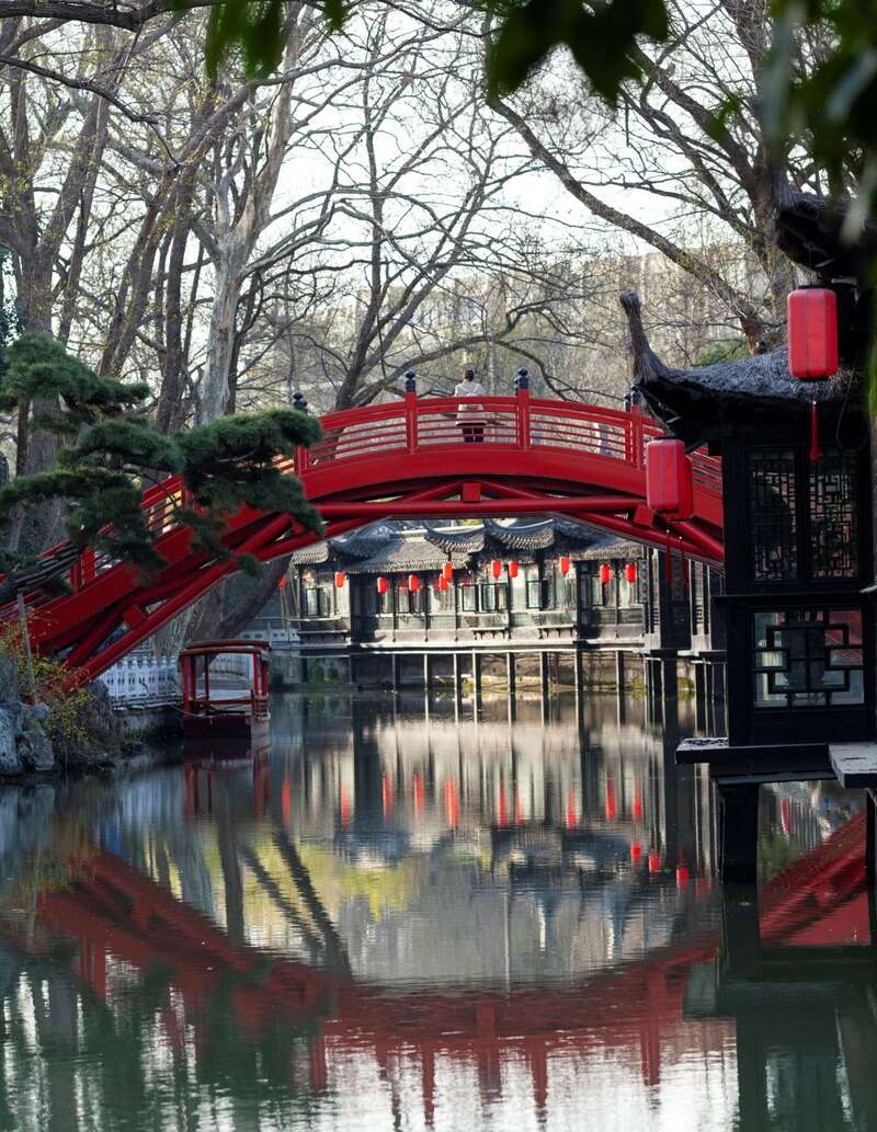 ↑扬州北护城河新建红桥(2024年3月20日)。 新华社记者 高巍 摄