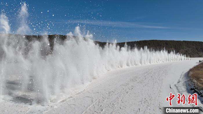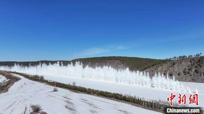 伴随着声声巨响,冰封的黑龙江江面瞬间激起数十米高冰瀑,场面非常壮观,所有爆破点位均达到预期效果,圆满完成黑龙江漠河段今春的防凌汛人工爆破工作。