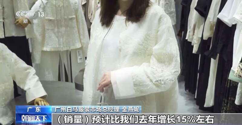 广州白马服装市场总经理 金燕妮:文化自信也是越来越强,今年开春到现在,销量预计比我们去年增长15%左右。