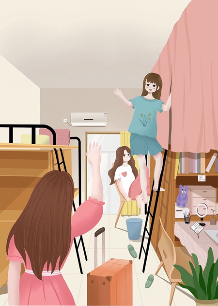 初见的那天,我们排着长长的队挪进宿舍楼,听来自五湖四海的室友操着不同口音进行自我介绍,互相奉上家乡的特产,拼命给彼此留下最好的第一印象。我还记得,有位室友高中管理严格,她来大学的第一天,就习惯性地叠起了豆腐块。有意思的是,一周后,她便成功被我们“同化”,从此再也没有好好叠过被子。