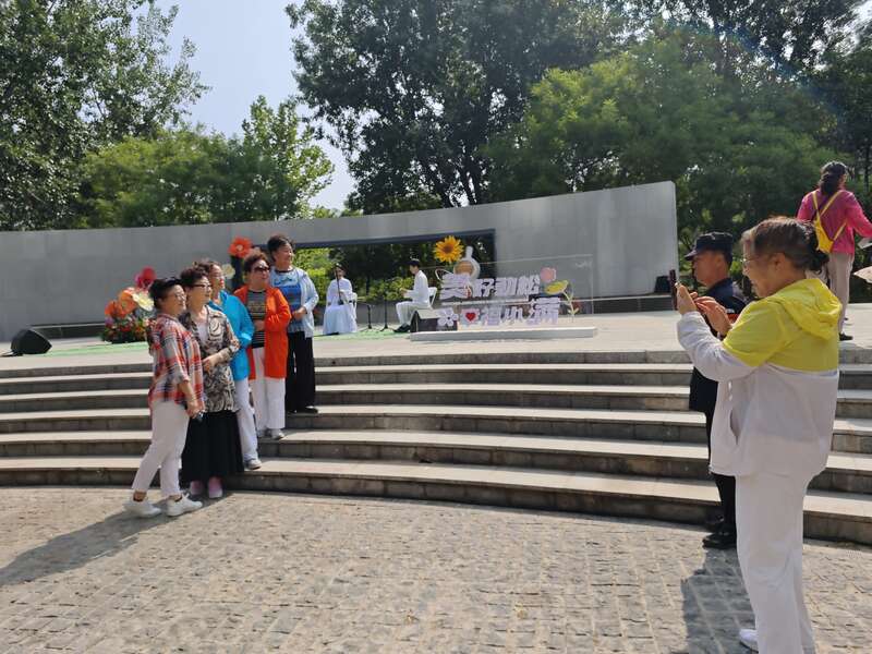 逛市集的同时,市民还欣赏到了精彩演出。身着汉服的表演者带来经典古风乐器演奏,流行乐队带来轻松愉悦的流行歌曲,还有劲松街道本地的文体队伍带来了特色群众文艺演出。