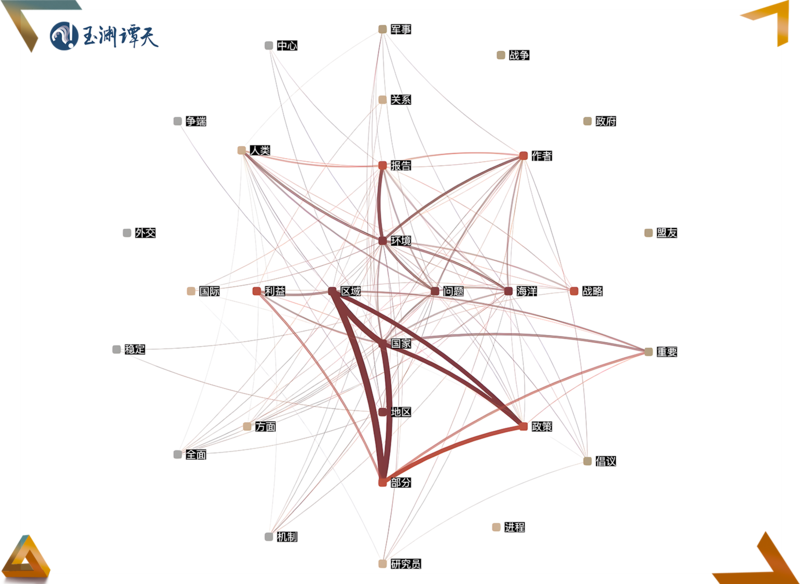 谭主集纳了东盟10国的44家智库今年以来有关南海的报告,发现“区域”“地区”“利益”等关键词,处于各国讨论的核心。相反,“争端”“战争”等,则处在相对边缘的位置。
