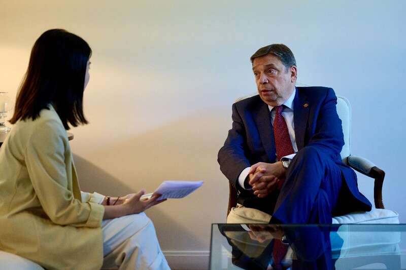 西班牙农业、渔业和食品大臣普拉纳斯接受人民网专访。西班牙驻华大使馆供图