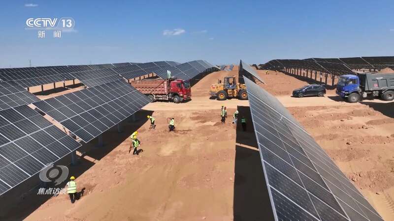 在内蒙古库布其沙漠北缘,一排排深蓝色的太阳能电池板格外醒目。总投资115亿元、占地48.7万亩、光伏装机容量13GW的新能源基地正在加紧建设。这个新能源项目是鄂尔多斯市防沙治沙的重点工程。沙漠、沙地地广人稀,蕴藏着巨大的风能、太阳能资源。内蒙古自治区“跳出治沙看治沙”,实施防沙治沙和风电光伏一体化工程,统筹推进增绿、增能、增收,力求取得1+1>2的效果。