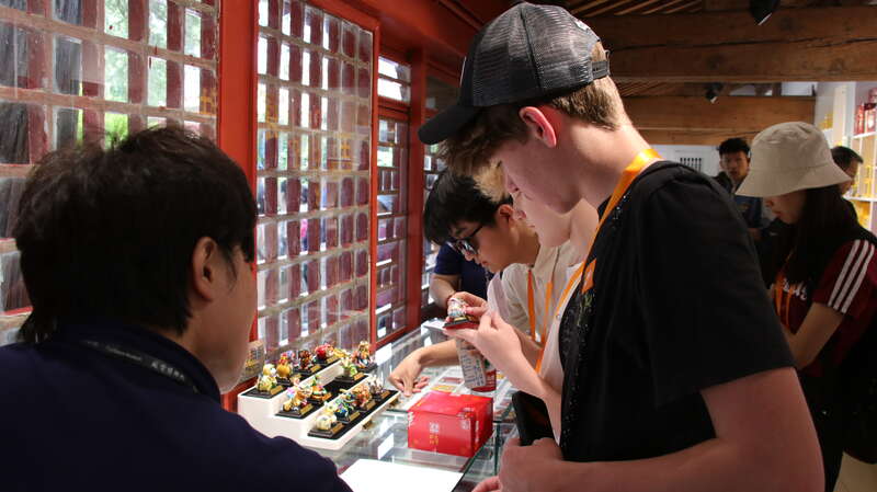 6月8日,北京,“未来之桥”中美青少年志愿服务交流活动首日,美国青少年在故宫文创商店挑选文创周边带给美国的朋友。中青报·中青网记者 王军利/摄