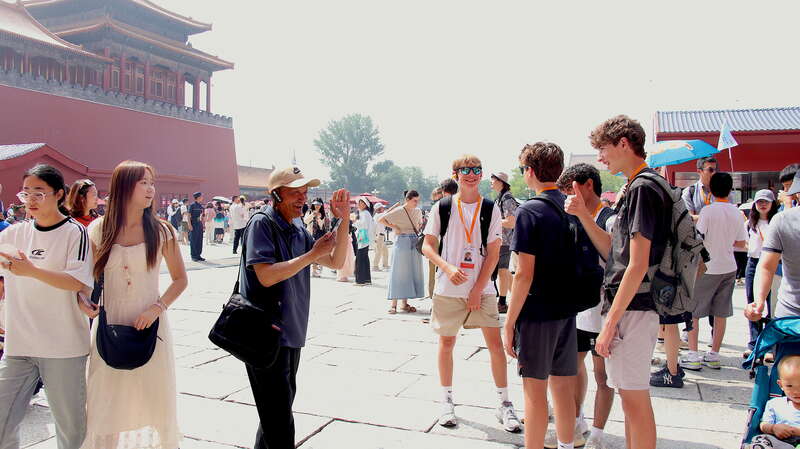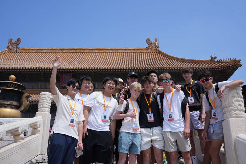 6月8日,北京,“未来之桥”中美青少年志愿服务交流活动首日,中美两国青少年在故宫合影留念。清华大学 韩煦/摄
