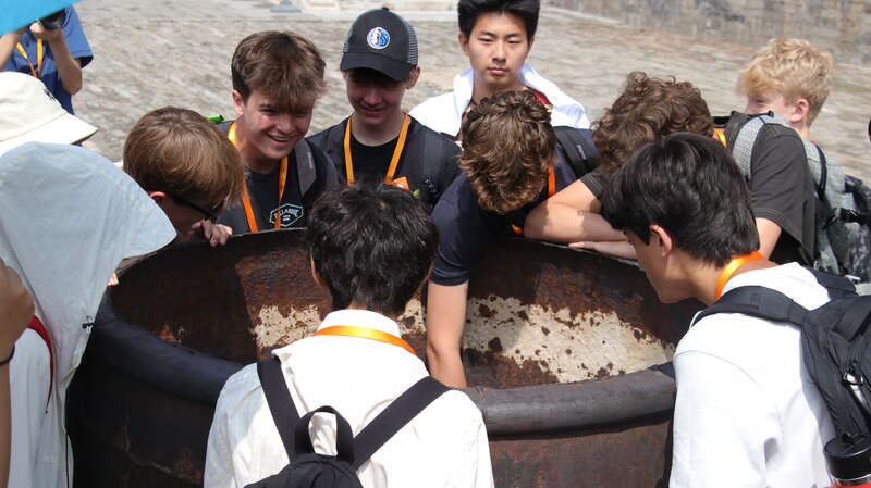 6月8日,北京,“未来之桥”中美青少年志愿服务交流活动首日,中国青少年代表为美国青少年讲述故宫内“大水缸”的历史、构造和功能。中青报·中青网记者 王军利/摄