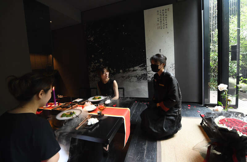 6月12日,人们在杭州大兜路历史文化街区的一家素食餐厅用餐。