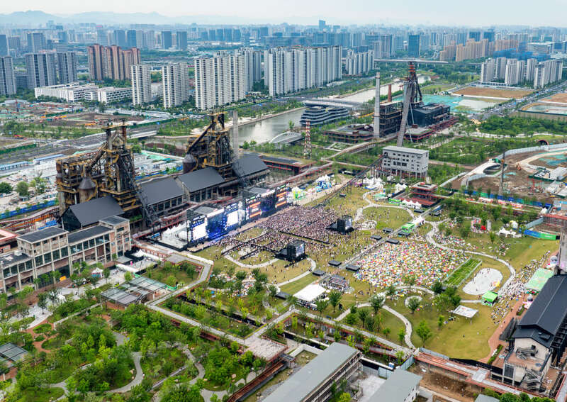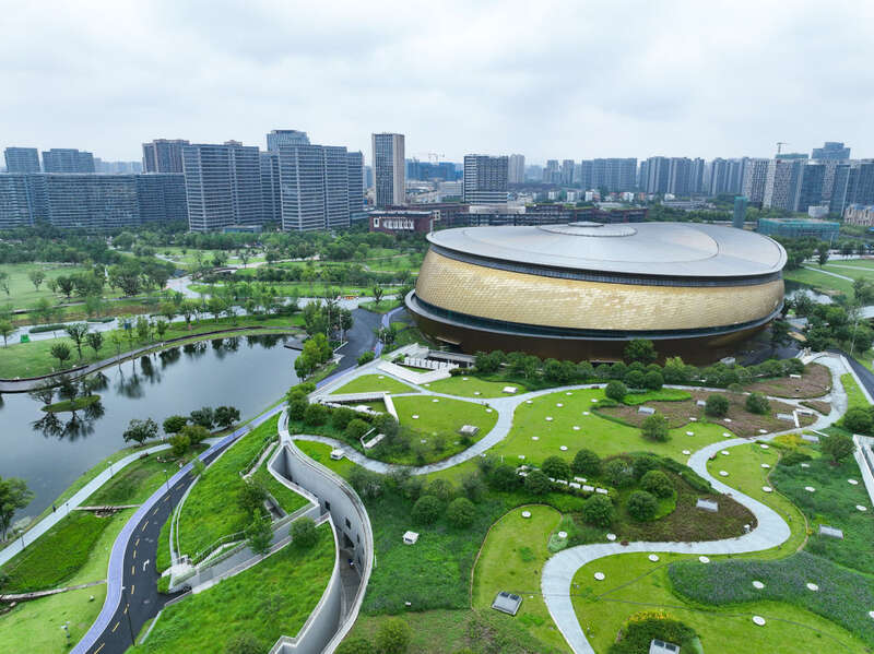 鸟瞰拱墅运河体育公园(无人机照片,6月12日摄)。