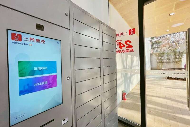 此外,一旁的“智能文件柜”实现了居民和社区事务受理中心24小时的材料交接——比如像需要提交预审材料的事项,居民可以利用“智能文件柜”进行存件,事项办结后,凭短信通知前来领取相关材料,真正实现了“不见面办理”,也方便居民在任意时间存取文件。