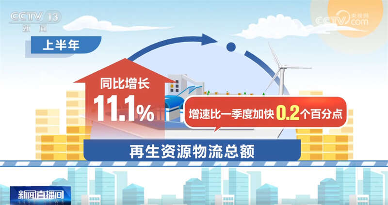 从再生资源循环领域看,上半年再生资源物流总额同比增长11.1%,增速比一季度加快0.2个百分点。