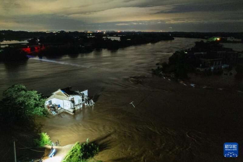 7月28日晚以来,湖南省湘潭县的涓水堤防在19个小时内发生三次漫堤决口,滔滔洪水从决口涌出,导致部分村庄成为一片泽国。