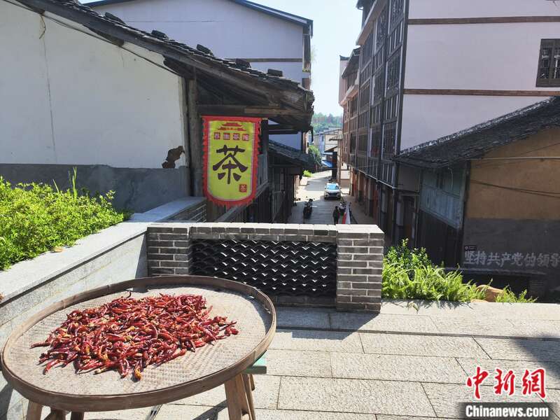 凤凰山村内,有村民在晾晒辣椒。刘越 摄