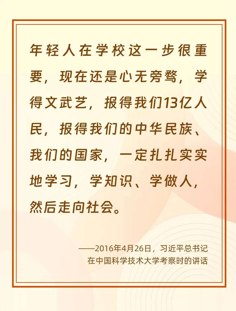 “恰同学少年,风华正茂。”从立身三尺到专精一技,从论文写在大地到奋斗干在实处,无数个“我”的理想交织成强国复兴的伟大梦想,拔节生长、璀璨向阳。