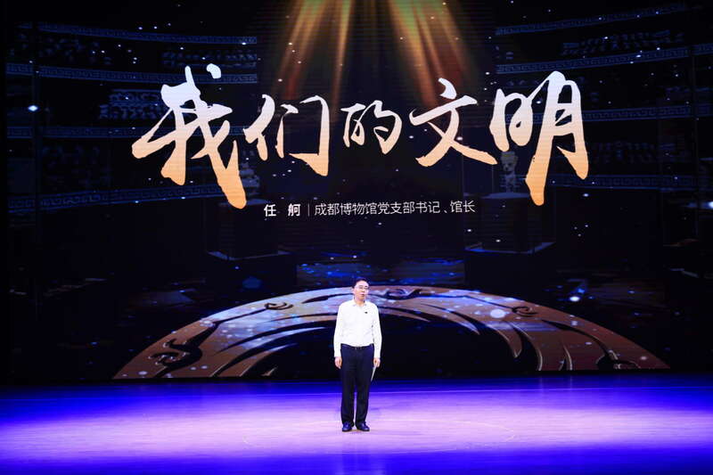 文化,连接着一个民族的过去、现在和未来。成都博物馆党支部书记、馆长任舸将来自成都博物馆的三件镇馆之宝“带”到了现场。从“闷墩儿”镇水神兽石犀,到技艺巧夺天工的汉代勾综式提花木织机,再到“信息量极大”的天府汉碑……任舸的讲述仿佛将现场带入博物馆奇妙夜,让原本静态的文物,被打开叙事的张力,中国辉煌的治水历史、织造业发展历史以及古代教育史,一一变得清晰而立体,串联起波澜壮阔的中国文化记忆。