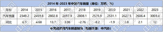 根据中国汽车工业协会公布的信息,我国于2009年以产销1379.10万辆、1364.48万辆的成绩超越美国,成为全球第一大新车市场。到2023年,中国汽车产销量连续15年蝉联全球第一,更是首次突破3000万辆“门槛”,产销量分别达3016.1万辆和3009.4万辆。