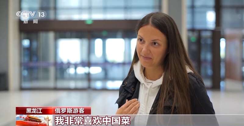 俄罗斯游客:我非常喜欢中国菜,地三鲜、锅包肉。我自己去过很多中国城市,哈尔滨、北京、上海,特别喜欢上海。我也喜欢你们的节日,春节、中秋节。
