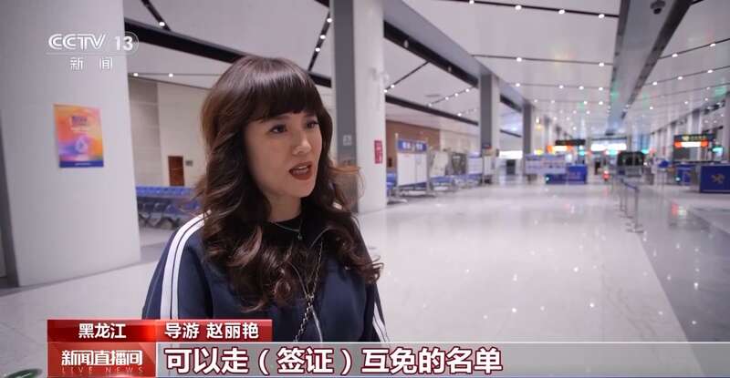 导游 赵丽艳:中俄双方旅行社可以走(签证)互免的名单,提前一天报名,第二天就可以入境到中国来。非常方便。