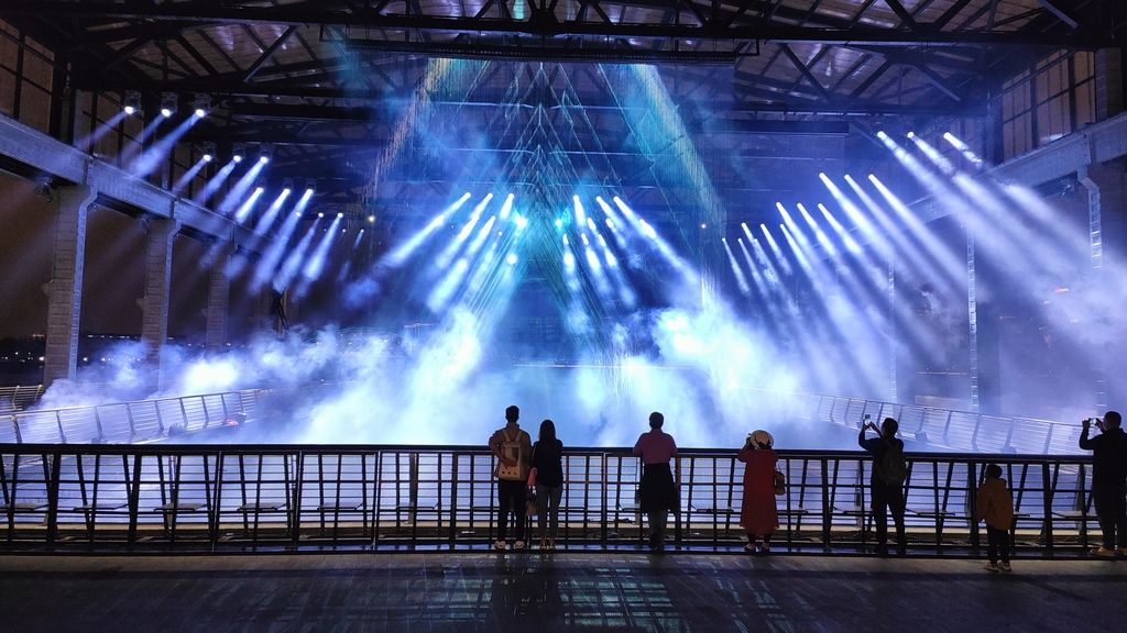 2024年10月7日,上海国际光影节。上海国际光影节闭幕式举办地徐汇滨江以“光谱艺汇”为主题,深度融合文化艺术、商业科技、人文历史、自然景观等多元业态,打造城市工业遗址夜景新形象、夜经济旅游新IP。