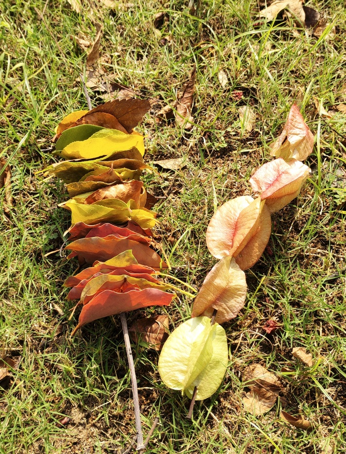 用不同颜色落叶做成的