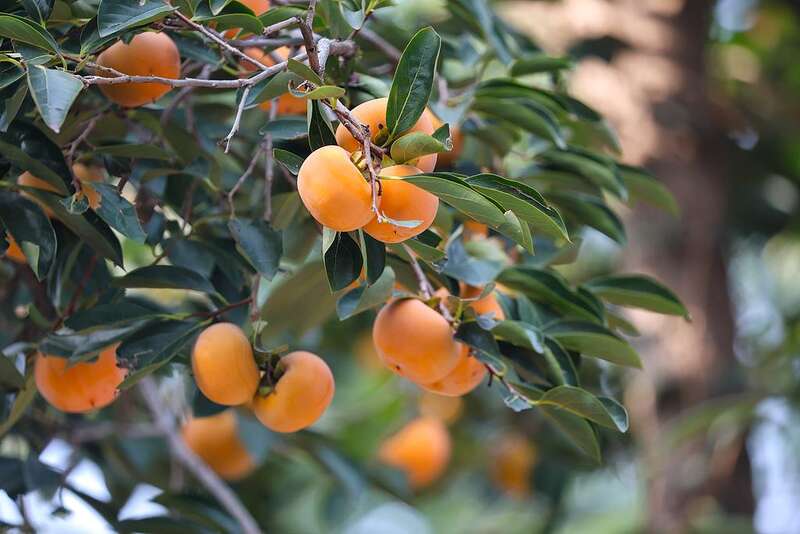 在金秋的暖阳中,柿子树硕果累累,挂满枝头,煞是好看。