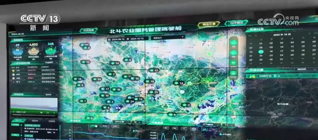 一起来揭开无人农机车背后“智慧大脑”的支撑,大家来看,它们之所以能够高效智能的运转,都是靠眼前这个北斗农业服务管理驾驶舱。通过这个系统里面,湖北农机“一张网”可以实现应急调度。比如,在秋收的关键期如果某一个地方遭遇连续降雨,可以根据这一张图看看农机集中的区域,及时地进行调度,避免秋收秋种没有农机可用的情况,保障秋收秋种顺利展开。