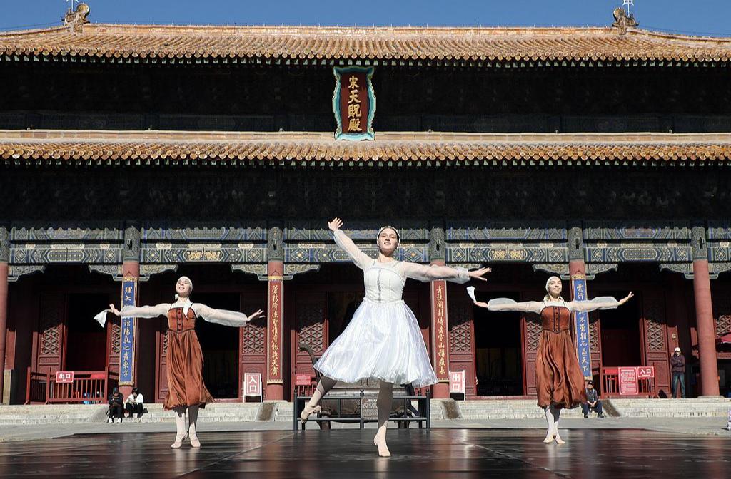山东泰安:东西方文化交融 俄罗斯圣彼得堡芭蕾舞团岱庙前“起舞”