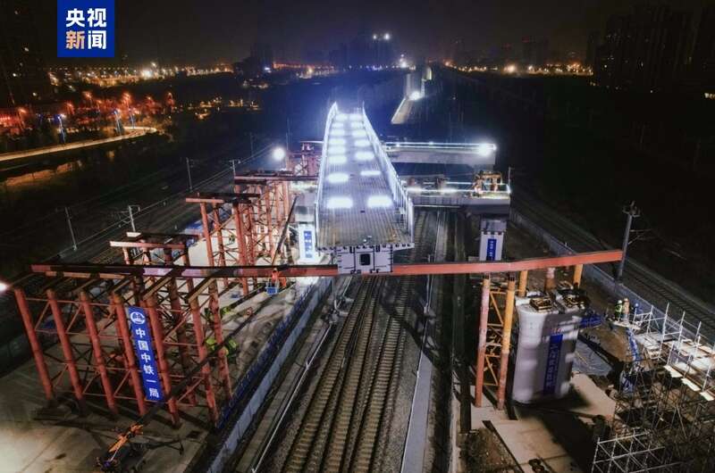 西北最大规模枢纽站内跨既有高铁连续梁成功转体