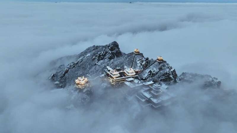 冰雪运动的升温也为当地景区带来了大量游客。银装素裹的老君山吸引了众多游客拍照赏景。