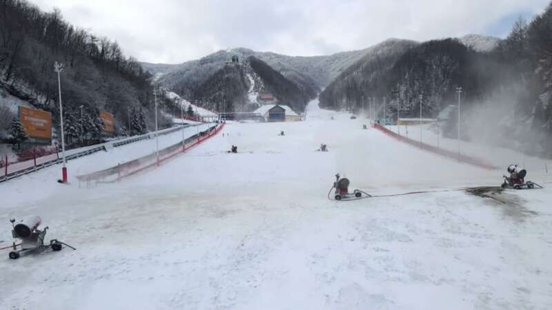 连日来,位于河南栾川的伏牛山滑雪度假乐园里,200多台造雪机全力开动,迎接新雪季的到来。