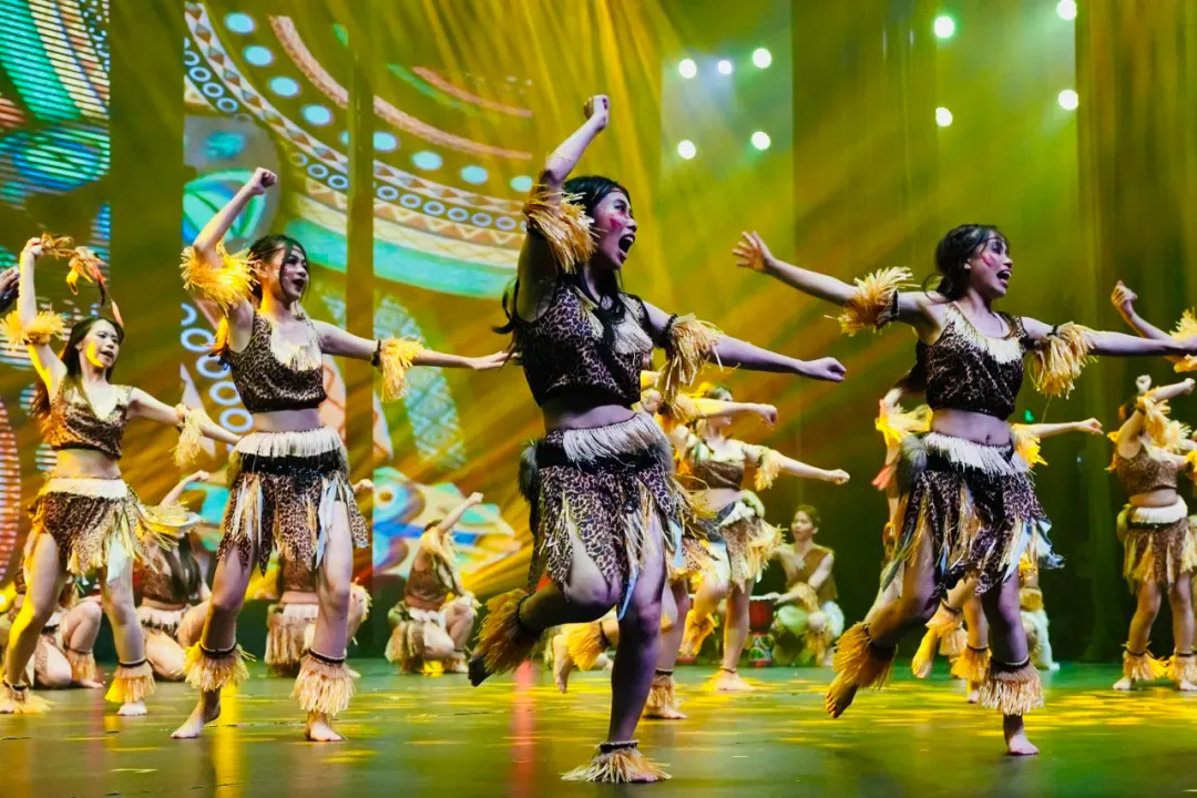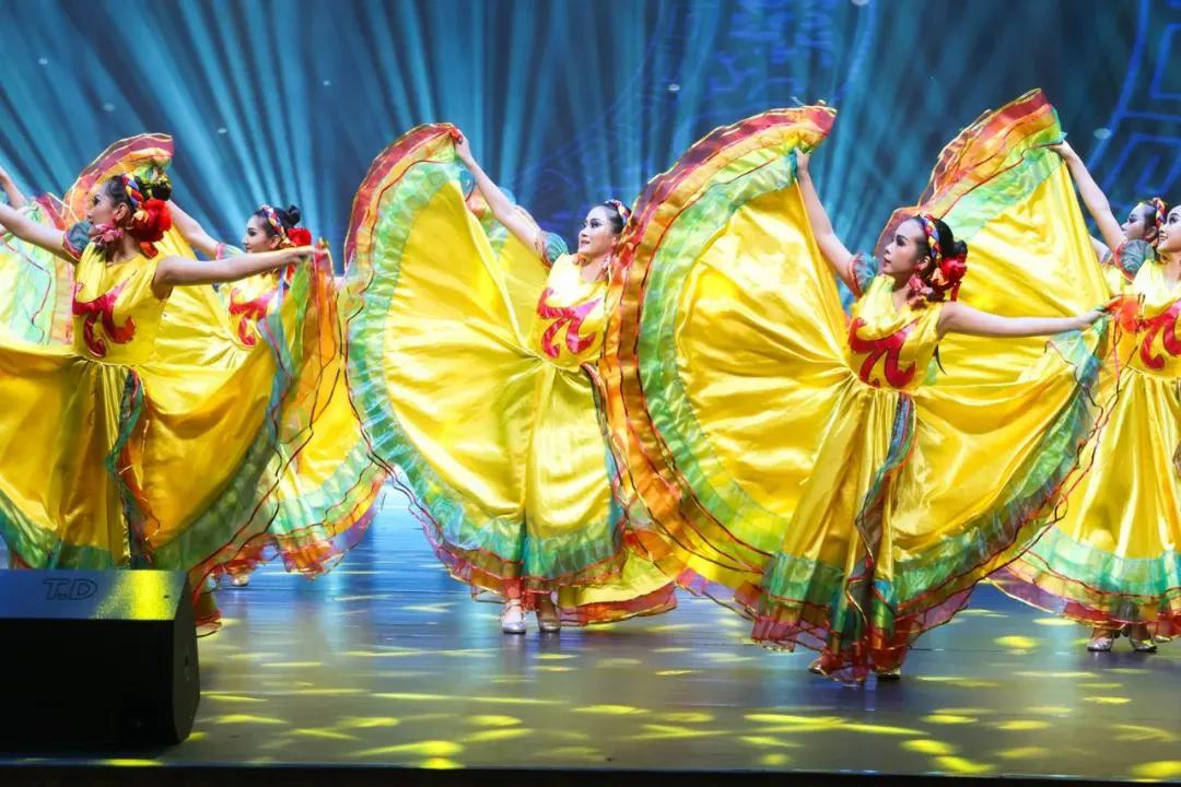 现场,舞者们通过舞蹈展现来自世界各民族的特色舞蹈,多元的文化在此交相辉映。有讲述中拉文化共融的丝绸故事的《和平之光》,有展现了斐济人民对自由、光明和希望的追求,与湾区青年的理想追求不谋而合的《热情斐济:大洋上的梅克美克》。既有一步一舞、步步生花的马来西亚舞蹈《绽放》,也有雍容华贵、节奏欢快的康康舞《舞动康康》。不仅有展现非洲人民热情奔放、狂野有力特色的格莱沃尔民族舞《格莱沃尔大狂欢》,还有展现欧洲古典宫廷风韵的宫廷舞蹈《宫廷盛宴》。