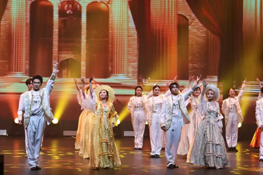 为了更好展现世界各民族的文化魅力,师生们在舞者服饰、舞台美术、舞蹈配乐等方面做足精心准备。现场既有华丽复古的欧洲宫廷服饰,也有非洲部落特色浓厚的图腾手杖;既有恢弘大气的游牧民族音乐,也有欢快热情的舞曲。