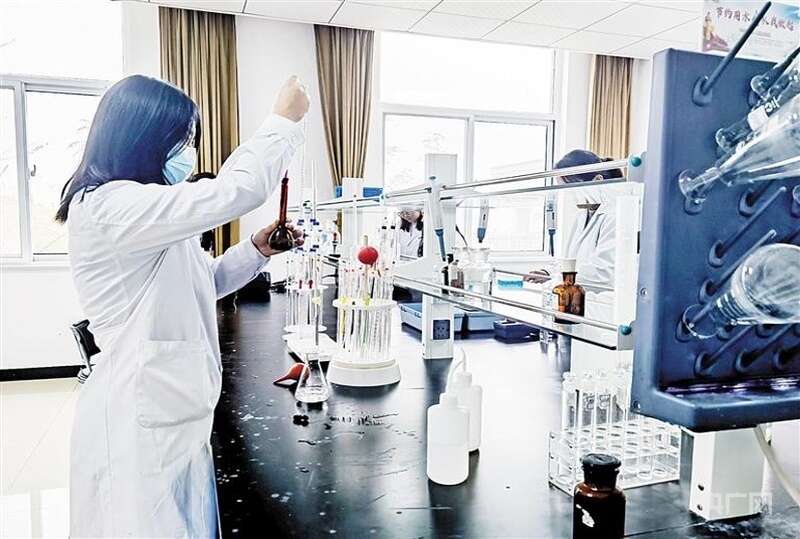 林州市第三水厂工作人员正在进行水质检测(央广网发 赵慧 摄)
