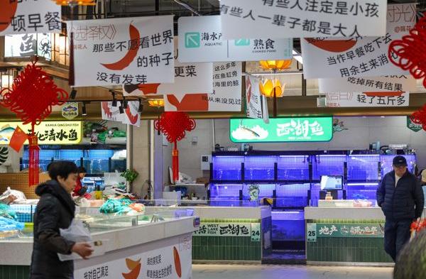 杭州一菜市场挂满“哲学标语” 西湖边农贸市场亮点十足