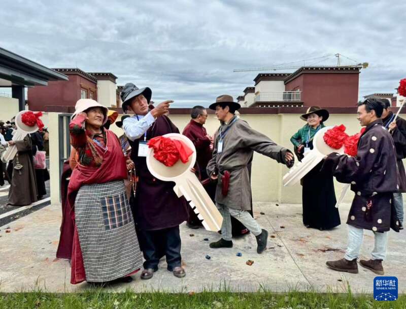 2024年8月10日,四川省甘孜藏族自治州色达县色柯镇约若新村举行交房仪式,牧民们在看新房。当地政府于2022年启动乡村振兴示范项目建设,整合资金在色达县城郊建设住房240套,并在改造和提升新村设施的基础上,打造民宿产业和非遗展示中心,让这里成为全县棚户区改造及乡村振兴的特色示范新村。