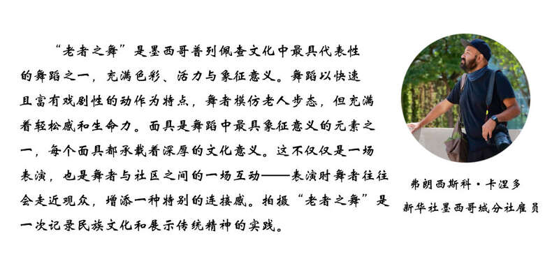 墨西哥面具舞中的“老者之舞”是墨西哥米却肯州最具代表性的传统舞蹈之一,起源于普列佩查原住民文化。这种舞蹈以其充满活力的表现形式和文化象征而闻名,据说发展自墨西哥独立之前人们向心目中的神明祈求丰收的仪式。在木屐的声响与装饰草帽的彩色丝带互相映衬之下,每当老者之舞上演,米却肯州帕茨夸罗的广场便化身为一座承载古老记忆的舞台。