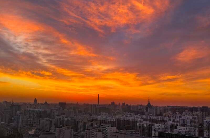 周末早起的人 先感受朝霞的美 来看北京的冬日暖色