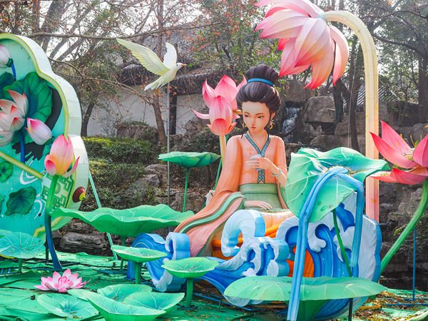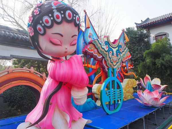 济南趵突泉迎春花灯安装加紧 大型花灯设计巧妙制作精良
