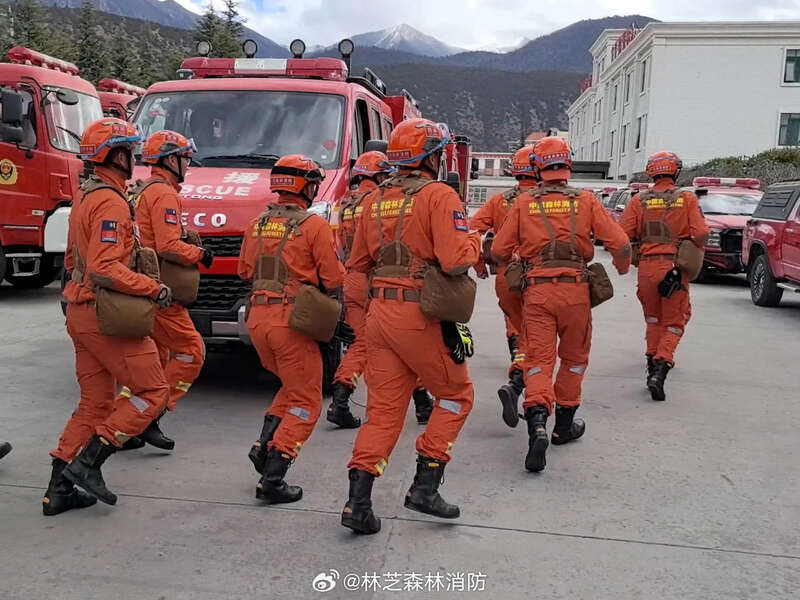 2025年1月7日9时5分,西藏日喀则市定日县发生6.8级地震,震源深度10公里,县城及周边震感十分明显,震中附近有不少房屋倒塌。地震发生后西藏林芝市森林消防支队迅速启动应急响应,第一时间对救援行动进行安排部署,按地震救援预案组织人员迅速集结。10时15分,从巴宜、米林、卧龙、工布江达、波密五个方向同步奔赴震中执行增援任务,共计出动165名指战员,30台车辆。
