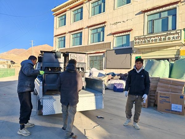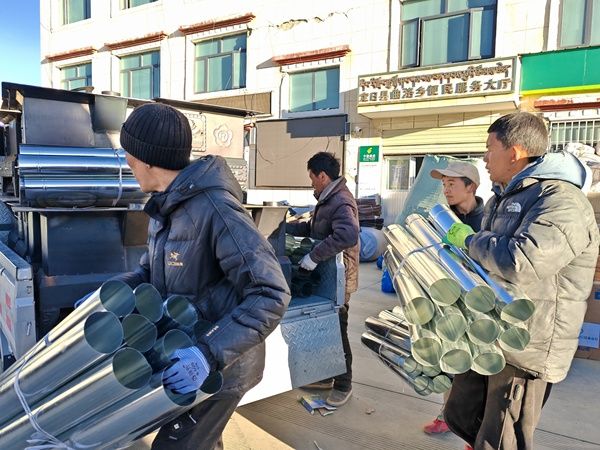 2025年1月9日,西藏日喀则,定日县曲洛乡分发取暖火炉。