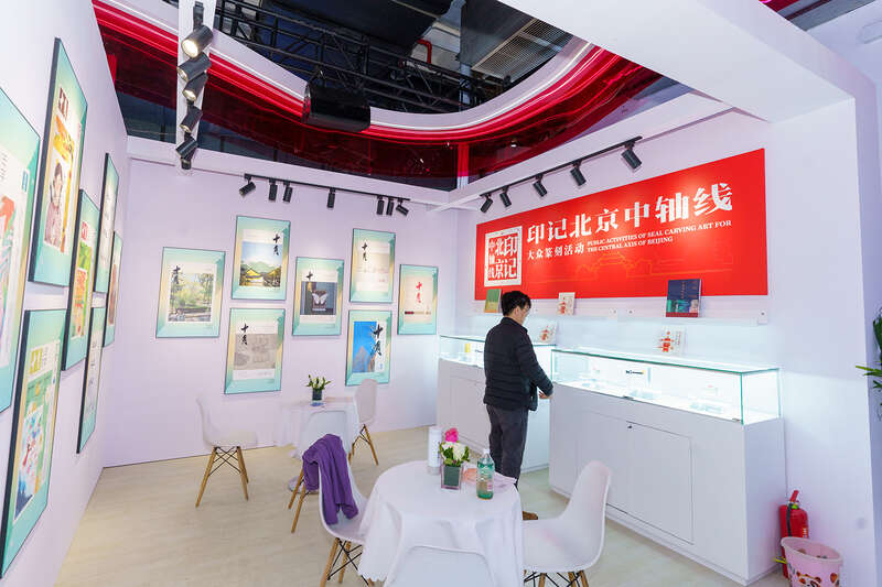 北京中轴线主题图书展架。主办方供图