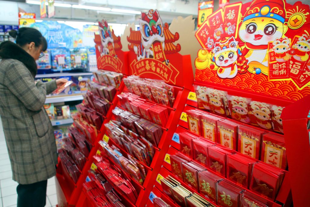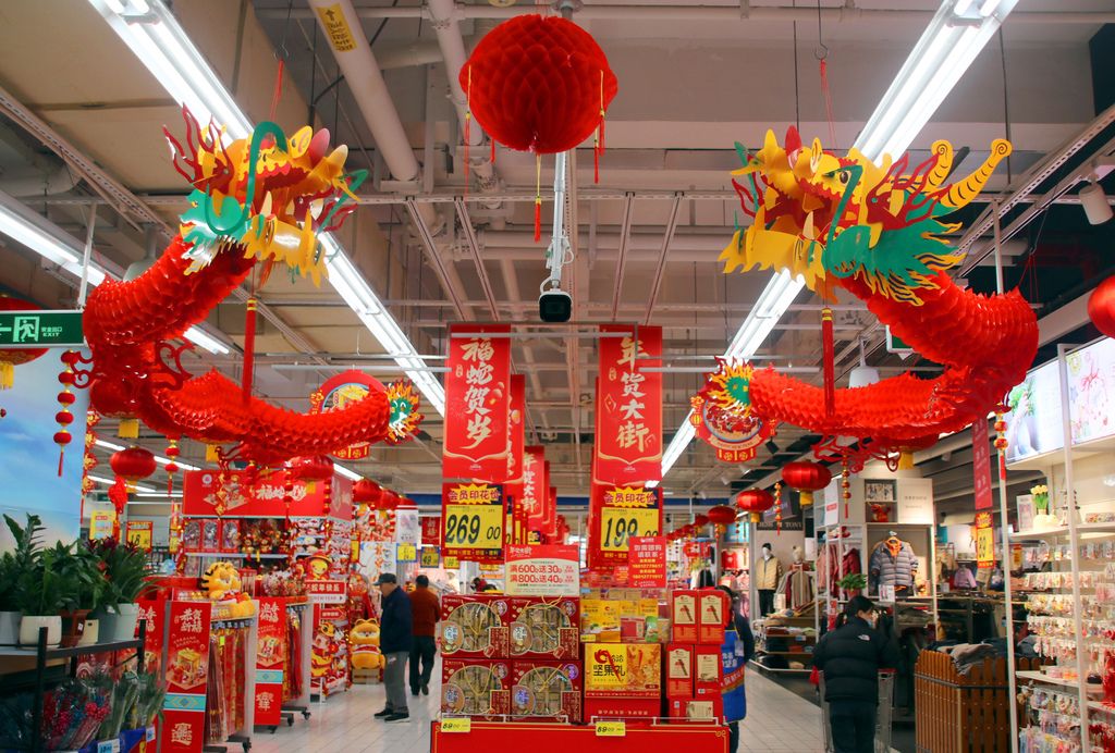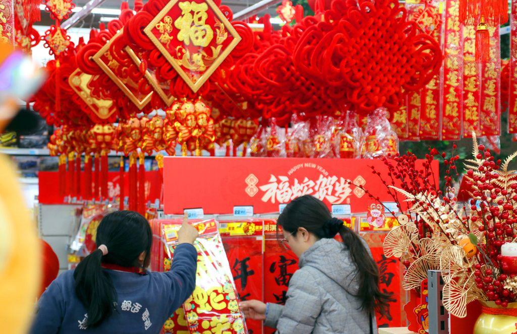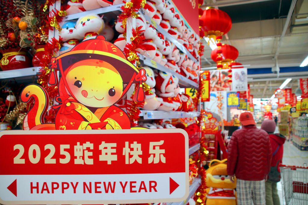 2025年1月10日,江苏省苏州市姑苏区,市民在一家超市选购新春饰品。
