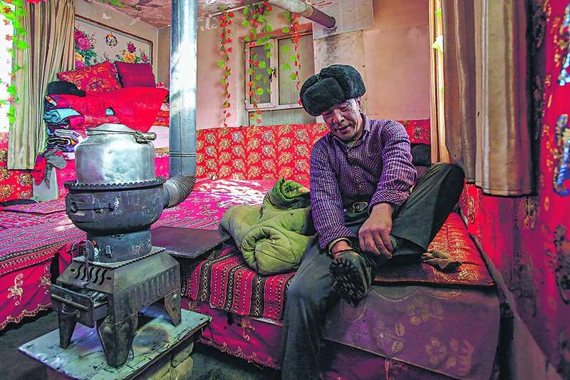 1月7日,乌什县亚曼苏柯尔克孜族乡别迭里山口牧业点,肉孜·萨迪克准备外出。
