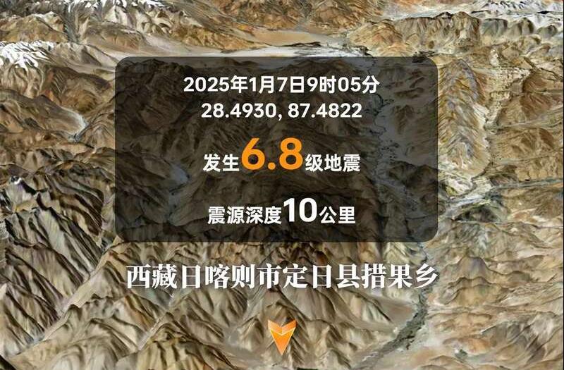 “吉林一号”卫星影像看西藏6.8级地震前后变化→