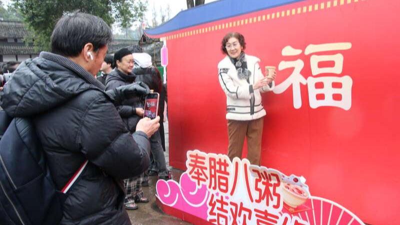 四川成都:发放腊八粥 庙会里体验民俗风情