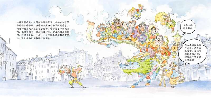 聂峻说:“2024年年初,我收到一个很特别的邀请,丹麦国家博物馆希望我用漫画的形式向年轻观众传达博物馆中中国藏品所蕴含的文化内涵,吸引更多年轻人了解中国传统文化。当我第一次走进丹麦国家博物馆时,马上被这幅明代卷轴《雷部出巡图》深深吸引,当下就决定以这幅画为灵感创作一部能让大家开心,同时还能感受东方哲学的作品。大家都很喜欢东方雷神和丹麦女孩闪闪相距万里、跨越千年的音乐会。希望这部发生在童话王国的漫画能让孩子们开心!”
