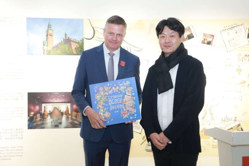 在“丹麦女孩和雷公”展览开幕式上,丹麦王国驻华大使孔墨客表示,漫画是一种非常现代的表达方式,同时也因为没有语言障碍容易被人理解。“这是一种可以表达两国关系的有力方式。”